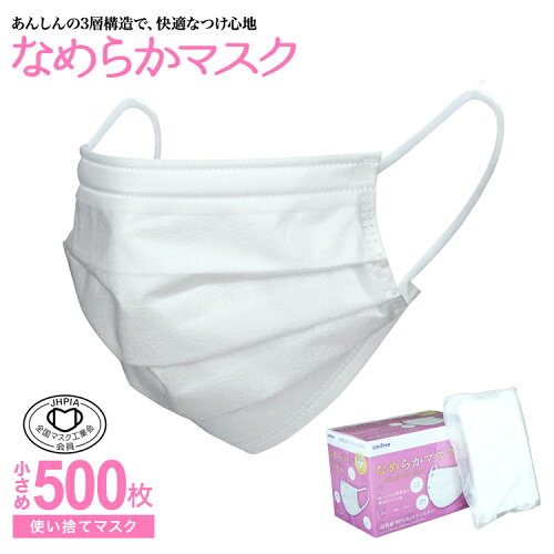 【まとめ買いがお得!】Unifree なめらか不織布マスク ユニフリー なめらかマスク 不織布マスク 不織布 小さめ 女性用 プリーツ型マスク 使い捨てマスク 500枚 箱 3層構造 フェイスマスク 花粉症 飛沫ウィルス対策 風邪予防 個包装 中国製