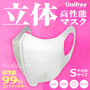 【箱無し】 Unifree3D立体型マスク ユニフリー Sサイズ 小さめ 女性 中高生 子供 使い捨てマスク 30枚 箱 3層構造 立体型マスク 立体マスク 不織布立体マスク 不織布マスク 不織布 花粉症対策 飛沫ウィルス対策 個包装 中国製