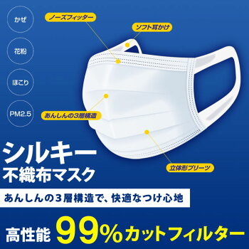2.肌触りの良いふんわり柔らか不織布を採用、通気性が高く息らくらく親水性の不織布だからメガネもくもりにくい! 3.ノーズワイヤー搭載で隙間をつくりにくく、鼻の形にぴったりフィットします。