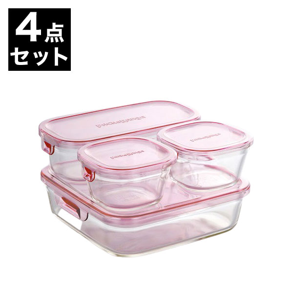 イワキ iwaki 耐熱ガラス 保存容器 グラスコンテナ 4個セット ピンク システムセット ミニ PSC-PRN4P2 電子レンジ対応 食洗機【送料無料】
