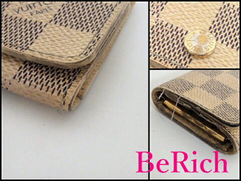 ルイ・ヴィトンのキーケースのご紹介です ブランド名 ルイ・ヴィトン LOUIS VUITTON ライン ダミエ・アズール 素材 PVC×レザー 商品名 ミュルティクレ 4 4連 キーケース カラー アズール 型番 N60020 製造番号 CT 2007 フランス製 サイズ W 約10.5cm H 約5.5cm D 約1.5cm 持ち手 ショルダー 付属品 − 仕様 ホック 開閉 ポケット 外側 − 内側 キーホルダー 4 ランク 全体 BC 外側 BC 内側 BC 外側状態 持ち手 表面 ・全体に使用による黒ずみ、薄汚れ、変色があります 底角 ・擦れ、ハゲ、黒ずみ、糸ほつれがあります 金具 ・細かな傷、変色があります 全体 ・表面に若干のベタつきがあります ・かなり使用感があります 内側状態ポケット 金具 ・細かな傷、ハゲ、サビがあります 全体 ・曲げ部分端の縫い糸にほつれがあります ・使用によるキー跡、黒ずみ、剥がれが全体にあります ・ヨレがあります 備考 評価 使用感はございますが、まだご愛用いただけるかと思います ● 発色具合によって実際の物と、質感が異なって見える場合があります。