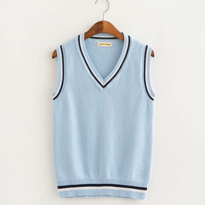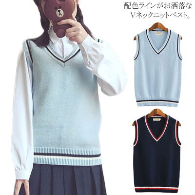 スクール ニットベスト 制服 ノースリーブ ニットトップス プルオーバー セーター 学生 制服 秋冬 卒業式 入学式 ボーダー 配色ライン Vネック ライン入り 大きいサイズ 中学生 高校生 通学 男の子 女の子 薄手 春