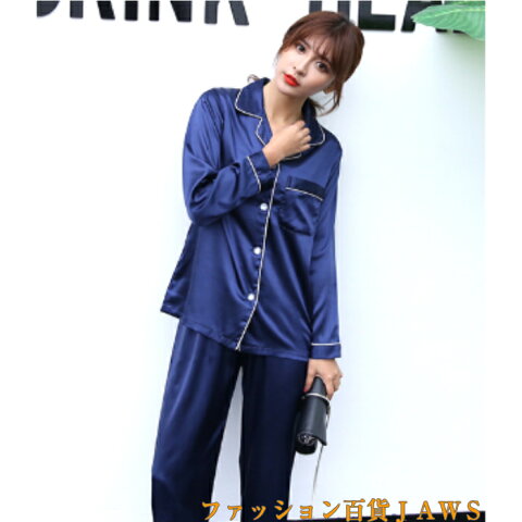 ファッション百貨JAWSTEL 0855-25-7007Mail jaws1@shop.rakuten.co.jpパジャマ ルームウェア レディース サテン シルクタッチ 上下セット 2点セット セットアップ ネグリジェ かわいい ナイトウェア 寝巻き 部屋着 前開き 長袖 半袖 ロング ショート パンツ 旅行 入院 快適 人気 セクシー プレゼント 大人 女性 セレブ 高級 無地 選べる カラー 全国送料無料 5