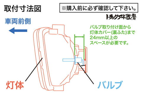 ●適合 国産12V/24Vトラック ※バルブ取付面から灯体カバー(裏ふた)まで24mm以上のスペースが必要です。